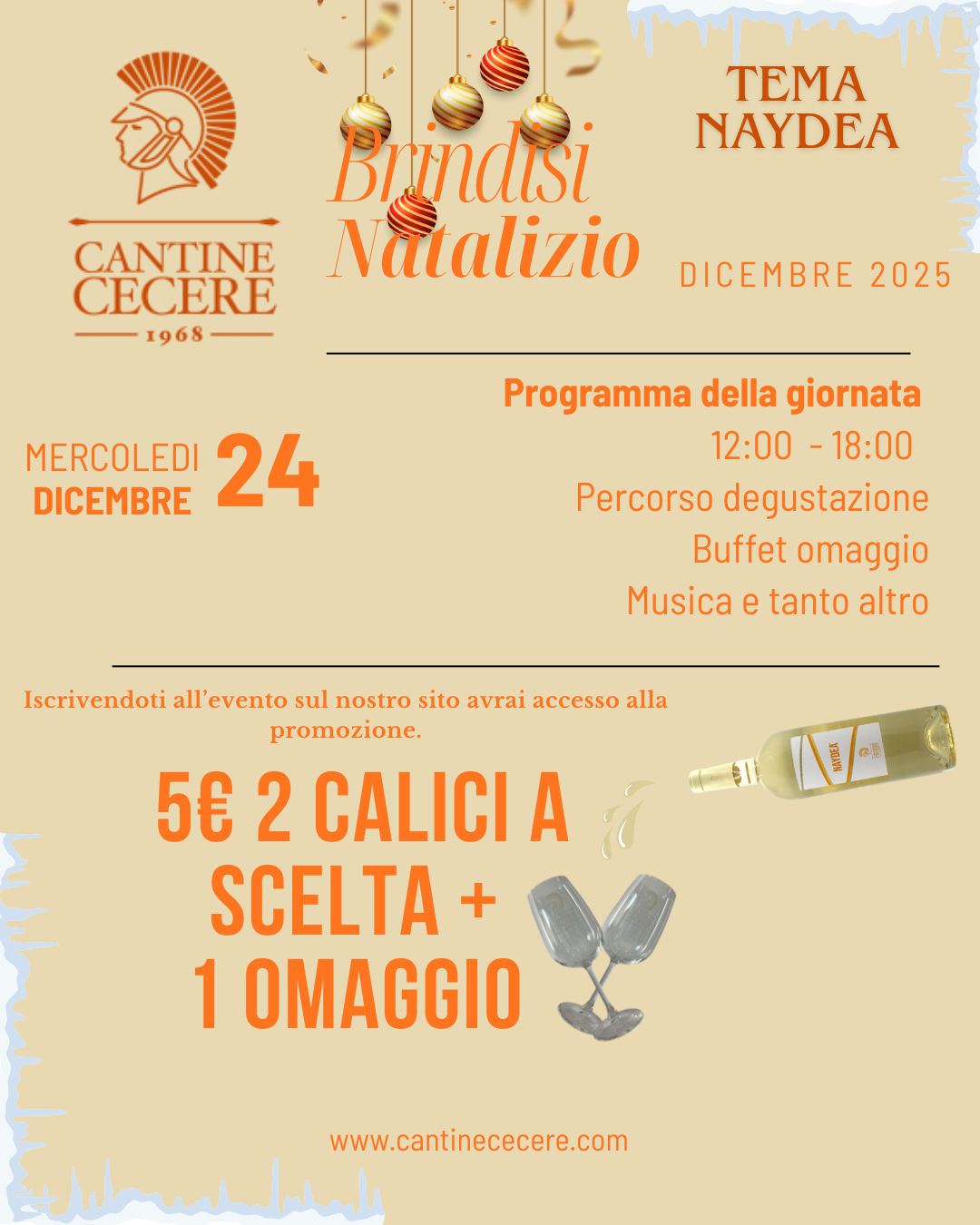 Partecipa al nostro evento brindisi natalizio, rendi magica la tua giornata insieme a noi!